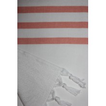 Collection exclusive Mille et une fouta. 100% coton, 400g/m2 Franges nouées aux extrémités 100x180cm 1 côté tissé à plat et 1 côté tissé éponge (dans le même tissu) Fabriquée en Turquie lavage en machine à 30° Option: Broderie personnalisée